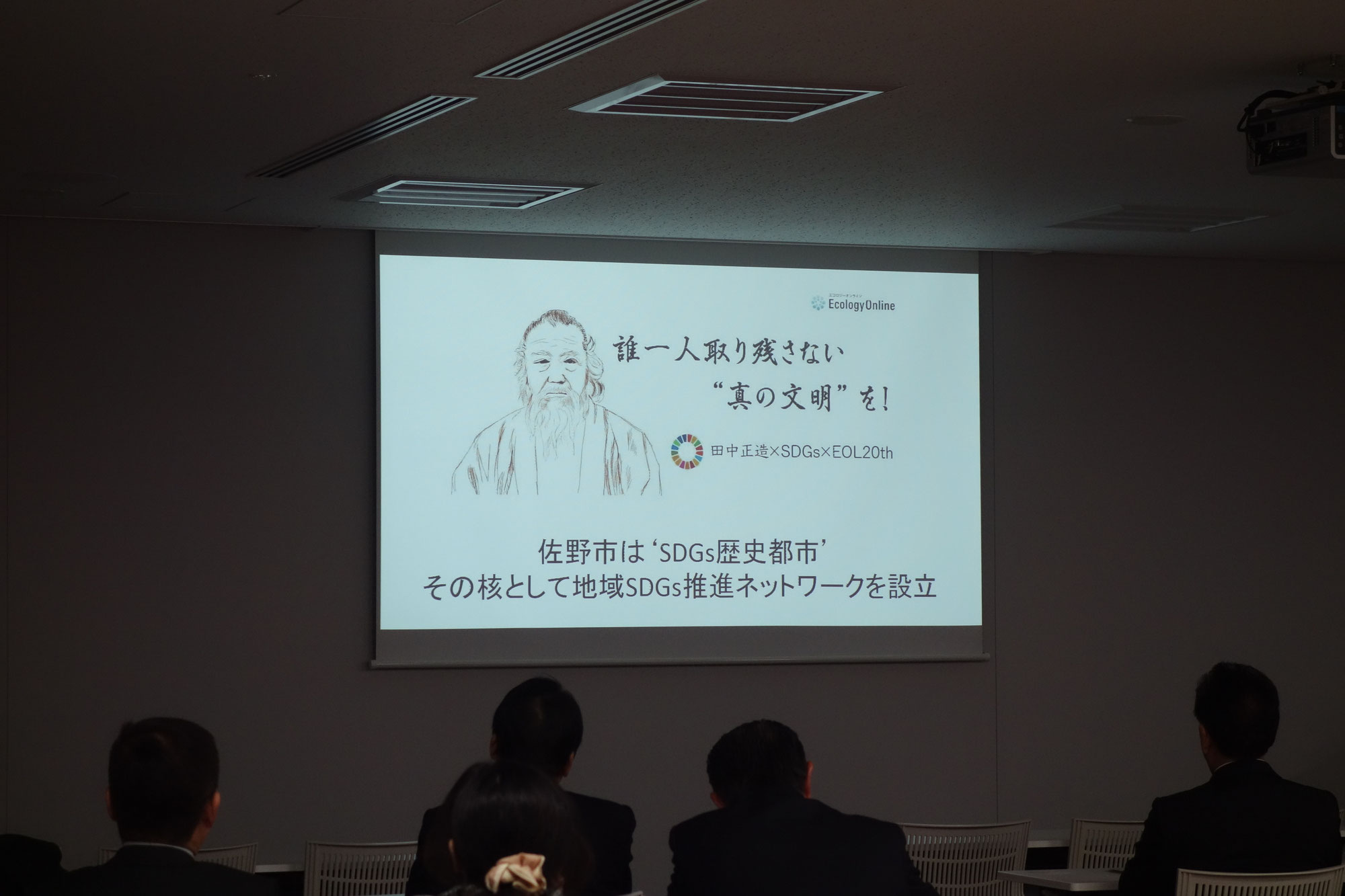 佐野市庁舎1階に、一社)日本有機資源協会事務局長の嶋本さんと株式会社森のエネルギー研究所代表取締役 大場龍夫さんをお招きして、お二人に講演していただきました。 初めにネットワーク代表を務める上岡裕から設立趣旨などが述べられ、ここ佐野市に生きた田中正造の言葉を引用して、SDGsの本質は古くから日本人の中にあったことが再認識されました。