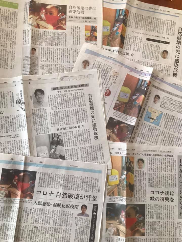 エコロジーオンライン上岡理事長が共同通信に寄稿した「自然破壊の先に感染危機 コロナ後は緑の復興を」という記事が、全国の地方紙7紙(下野新聞、神奈川新聞、信濃毎日新聞、長崎新聞、四国新聞、南日本新聞、愛媛新聞)に掲載されました。