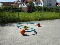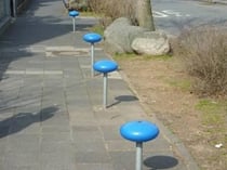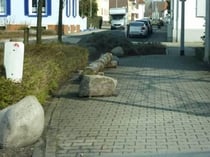 子どもの生態調査や、子どもの視線でものを見て、考える手法など、コンセプト策定の中身も大変興味深いのですが、ここでは、とりあえず結果だけをみなさんに紹介することにします。「遊べる街」では、子どものよく通るルートを精通し、ネットワーク化し、その道路上にある「死んでいる空間」を見つけ、あるいは資源となりうる空間や対象物を発見し、そこに「定義を定めない遊戯器具」を設置します。例えば、「石」「カラーブロック」「鉄の棒」などがこれに該当します。グリースハイム市は、市内で合計100ヵ所に写真のような「子どもを招待する空間」を設けました。もちろん、この設置前後における子どもたちの感想や効果も、アンケート調査で学術的に解析されていますが・・・そんなことより、みなさんが子どもだったら、通学路や塾への通り道、友達の家に行く途中に、こうした場所があったら幸せだったと思いませんか? というか、なかなか目的地には辿りつけませんよね。アンケート調査でも、撤去してくれないと遅刻ばかりすると答えた子どもがいたことを付け加えておきましょう。