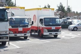 また駐車場には、Yパン社のトラックが何台も停車していました。ドライバーさんたちに尋ねてみると、これから仙台に向かうとのこと。Yパンでは震災直後から支援物資としてパンを届けていましたが、従来の配送プロセスでは、被災地に着いたころには、賞味期限を過ぎてしまうことが少なくなかったようです。そこで宮城県からの要請で、全国のYパン社の工場から同社の仙台工場にいったん集めて、そこから直接、被災地へと届けることになったということでした。ドライバーさんたちの中には、なんと、大阪の工場から来たというドライバーさんも。おいしいパンをおいしいうちに。ドライバーさんたち、本当にありがとうございます。