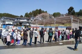 被災地支援4日目。朝早くからソーラーパワートラックの周りは、(我々が持ち込んだ)洗濯機の脱水機能を利用する人でにぎわっています。濡れた洗濯物はいくら手で絞っても、十分に水が切れないため、なかなか乾かないのだとか。まだまだ水も冷たく、洗濯はかなりの重労働です。しかし、脱水機で絞った洗濯物の軽さにはみな驚いており、電力のありがたさを改めて実感します。