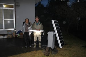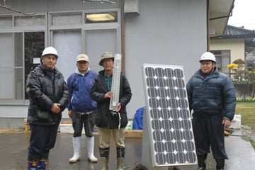 4月22日、ソーラーパワートラックで支援を行っている宮城県南三陸町廻舘地区へ大阪で活動する企業のみなさんが独立型LEDライトを寄贈してくれました。今後は各地域の電力供給の状況に応じて使っていただくことになっています。