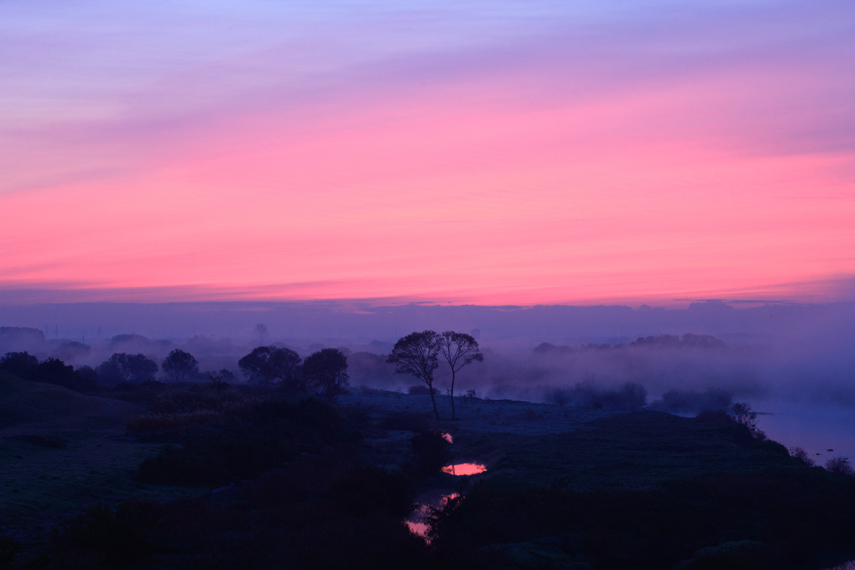 私が住んでいる佐野からは車で15分位の距離にある渡良瀬遊水池。10月頃になって気温が下がると、渡良瀬遊水地の川沿いでは靄が立ちこめ幻想的な風景となります。広大な自然のキャンバスが描く風景は私の心をとらえて長年通う理由のひとつになりました。また多種の野鳥が生息しその命の営みを続け、朝一斉にV字編成で飛び立つ様子は、何度見ても感動しました。