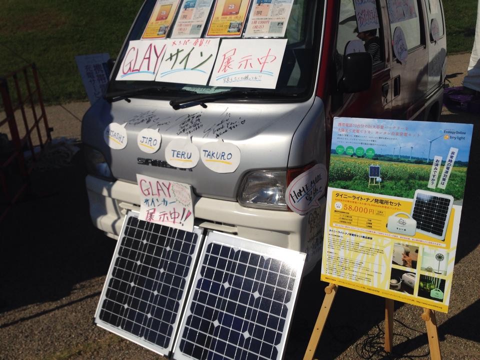 9月20日(土)、宮城県利府町の宮城スタジアムで「GLAY EXPO」が開催されました。エコロジーオンラインの活動の原点は2001年、北海道石狩市であった同イベントに参加し、坂本龍一氏とともにartists powerとして出展したこと。当時、会場を訪れた観客のみなさんに自然エネルギーを体験してもらうブースを提供したことを昨日のことのように覚えています。あれから13年、あの場を体験した仲間たちのつながりから多くの環境ムーブメントが生まれていきました。