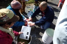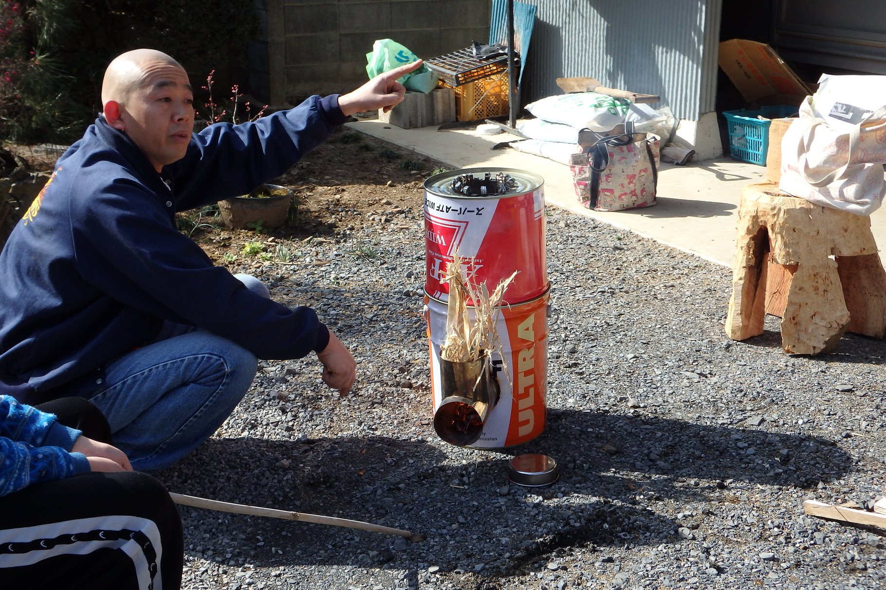 そして溝越さんから、ロケットストーブについてのお話と作り方の説明です。