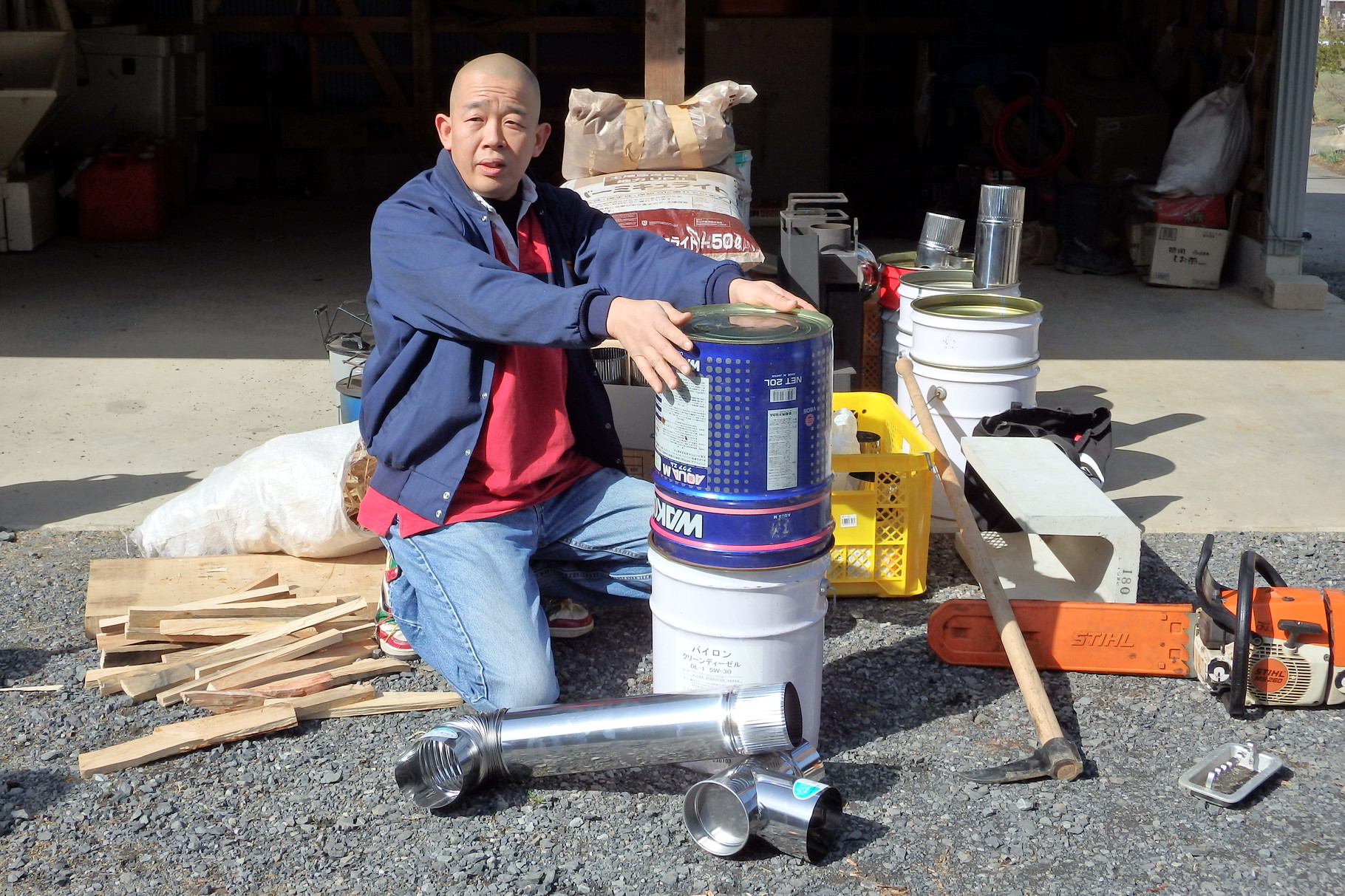 まず、ペール缶を二つ用意します。(溝越さんは車屋さん関係に顔が利くので今回ご用意できました^^)