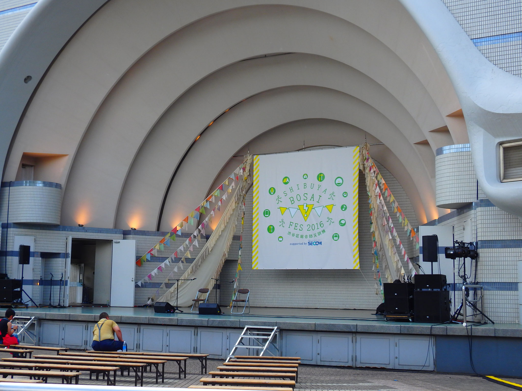 メインステージでは、渋谷区長さんをはじめ、江口洋介さんや平井理央さんなどたくさんのゲストの防災の話を皆さん熱心に聞いていました。
