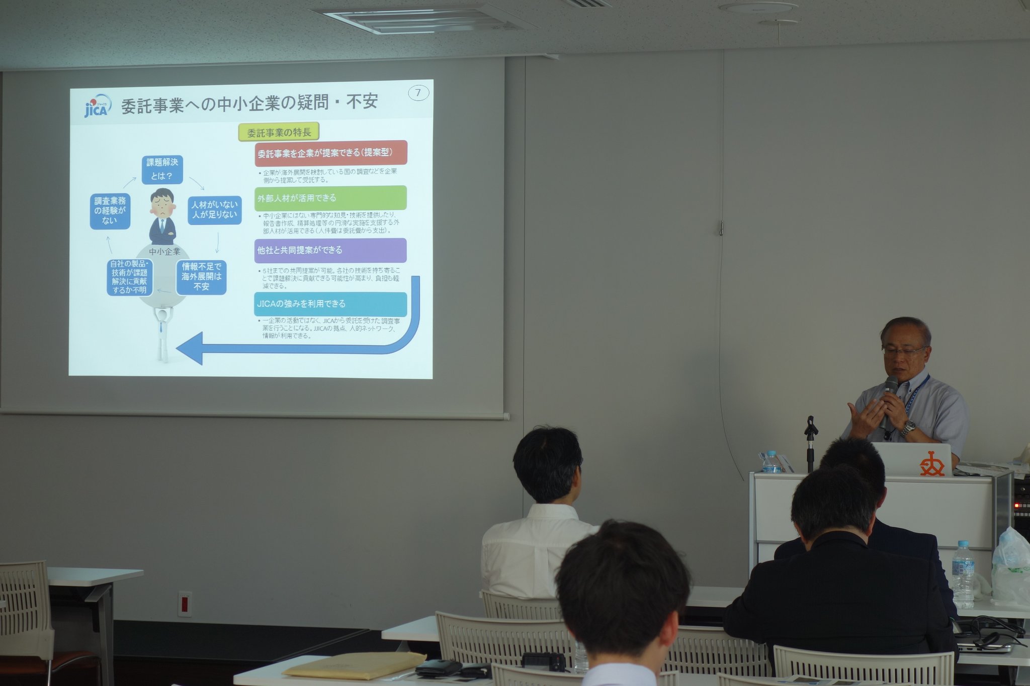 上岡、大和田がマダガスカルのスライドを見ながら報告した後、足利工業大学の安藤先生から海外事業についてのお話、JICA筑波さんから様々な取り組みについてのご説明がありました。