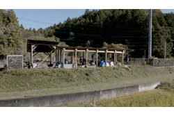 予定通り神社周辺と里山の周辺の環境を撮影したのち、代表の田中から丸太小屋を撮ってほしいとの声が。