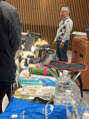 後半のワークショップでは、100円ショップの防災グッズを使って、ふだんから持ち歩ける物を3点ピックアップしてもらい、なぜそれを選んだのかを考えてもらったり、簡易トイレを組み立て、災害時のトイレを疑似体験してもらったり、なかなか触れることのないグッズ類を手にとってもらったりと、短時間でしたが、盛りだくさんのセミナーとなりました。
