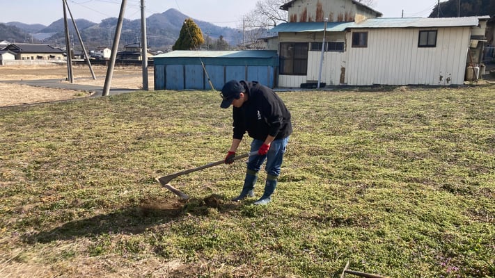 鍬を使って土を耕し、畝作り開始です。