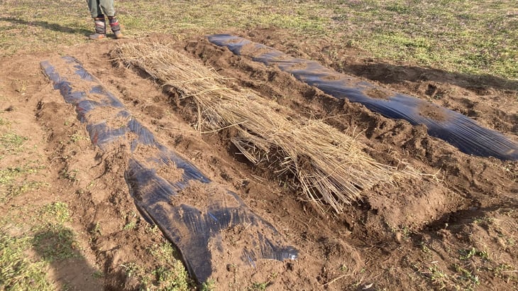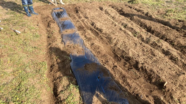 ②種イモを植え付けてから、マルチを張る(芽が出たらマルチに穴をあける)