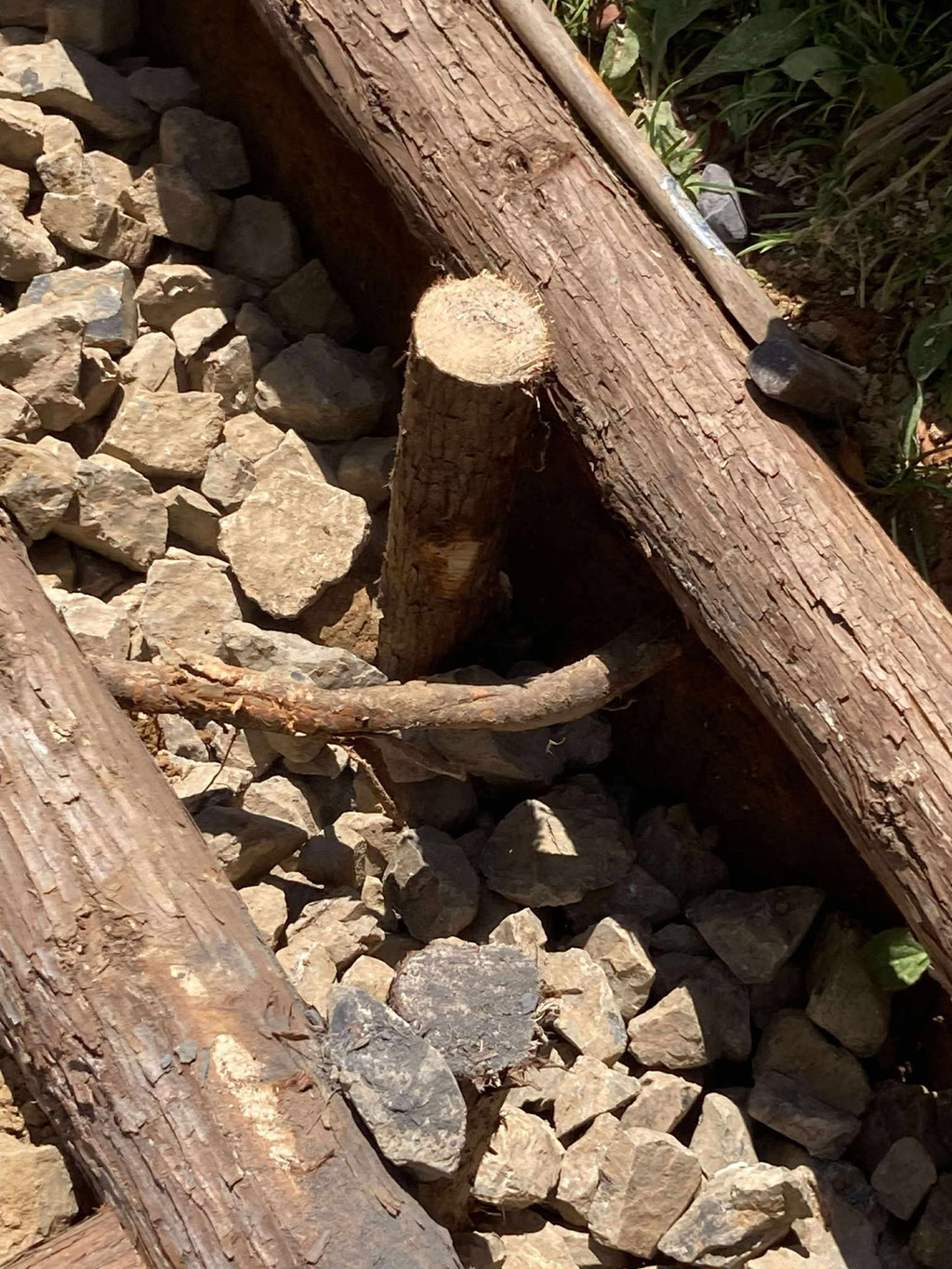 福井のかひる山で、シガラを作ったさいに、やはり傍の木から根っこが伸びて来ていたのを、坂田さんが大事にしてと仰っていたのを、思い出しました。