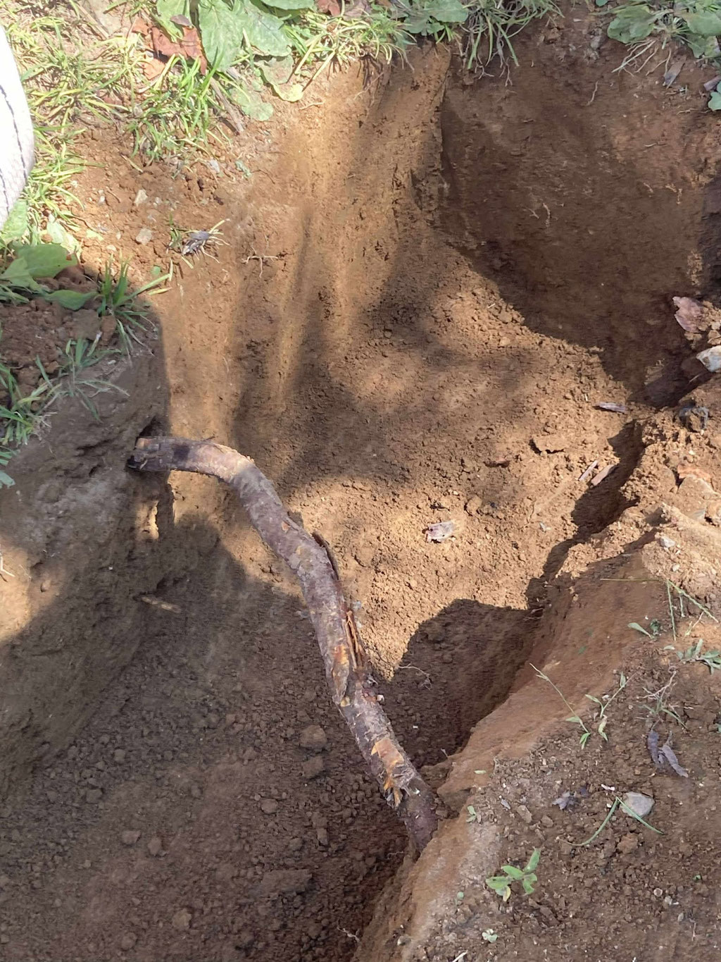 坂田さんの教えを聞きながら作業を進めていたその時、ユンボで掘った所に桜の根が出てきてしまいました。