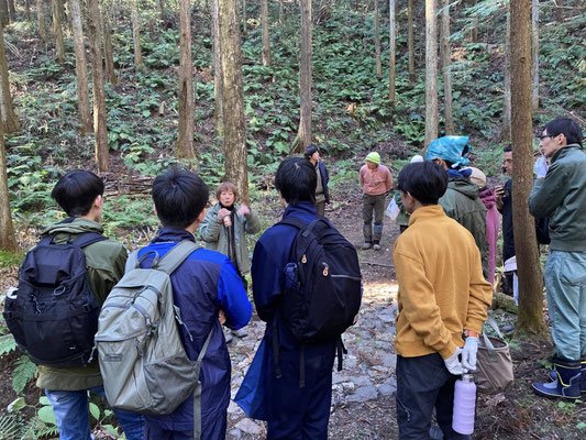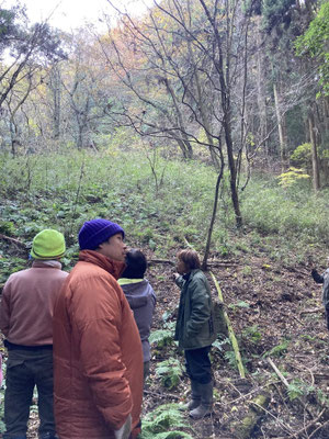 午後からは、何十年もほったらかしにされた里山をどうやって生物多様性の山に再生したらいいのか、坂田さんに見立てをしてもらいました。