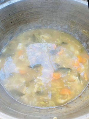 皆さん大喜びで、男子学生の3人は初「すいとん」らしく、嬉しそうにおかわりしていました。写真はあっという間に少なくなってしまった「すいとん」鍋です😅