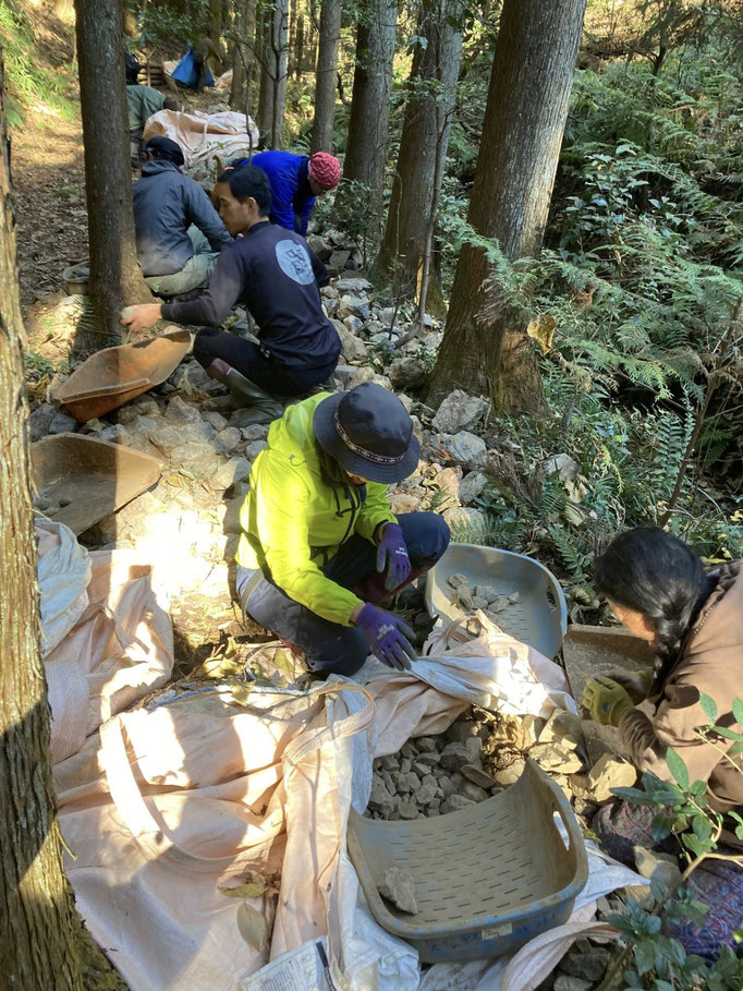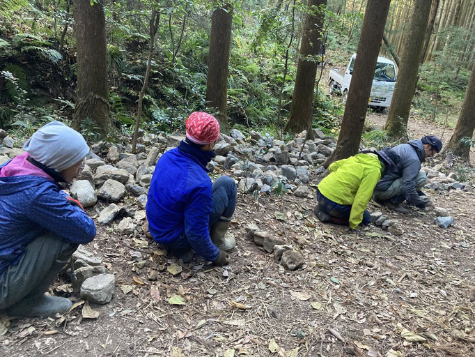 昨日の石積みの続きと、初めての方には坂田さんがまた改めて石の説明をしてくださいます。昔からの手法を皆さんに伝える坂田さんの熱意。何回でも根気よく丁寧に教えてくれる坂田さんには尊敬しかありません。