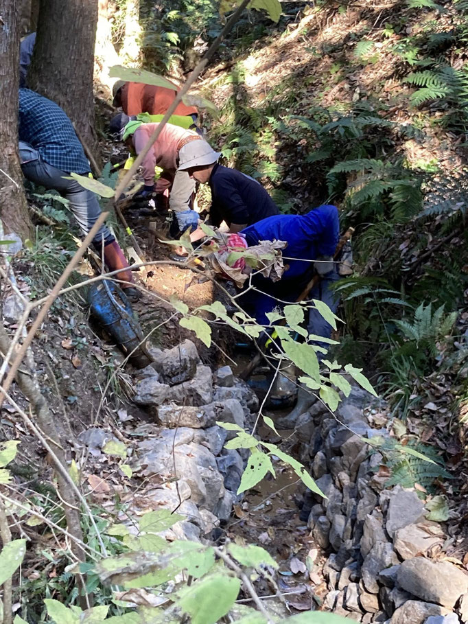 昔の人が自然との共生の中で当たり前にやっていた石積みなどの作業をやめてしまって、手軽で便利な物を使い始めたから、本来の泥を止めたり水の流れを生かす事ができなくなってしまっているという悲しい現実。