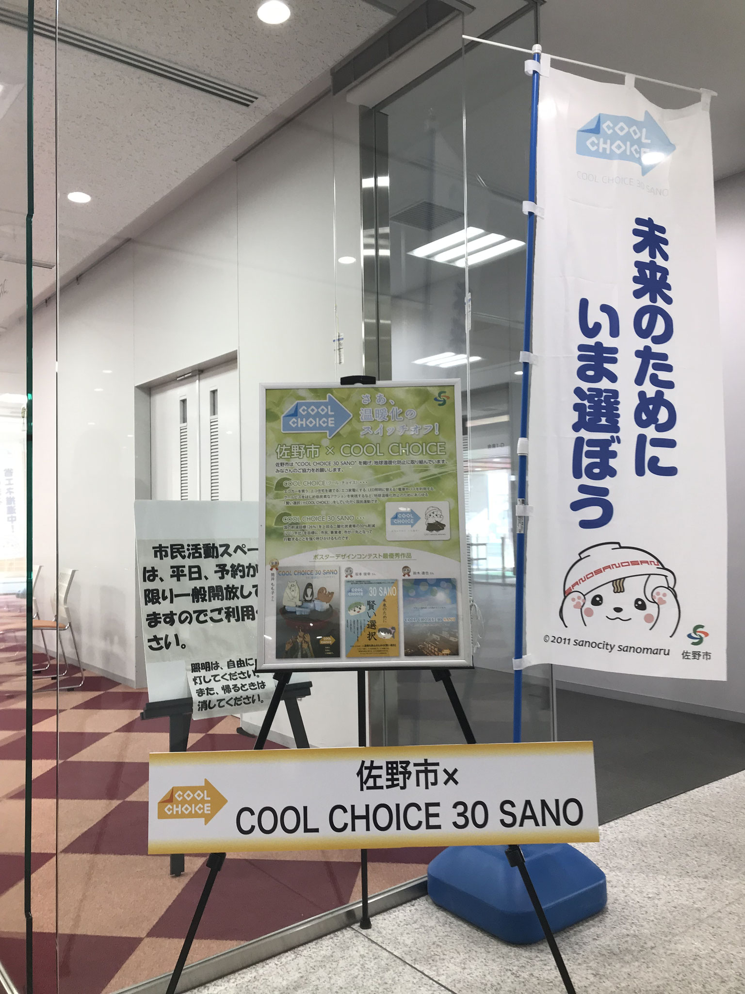 本日から12/21日まで佐野市役所市民活動スペースCにおいて、COOL CHOICE 30 SANOのパネルの展示を行っています。