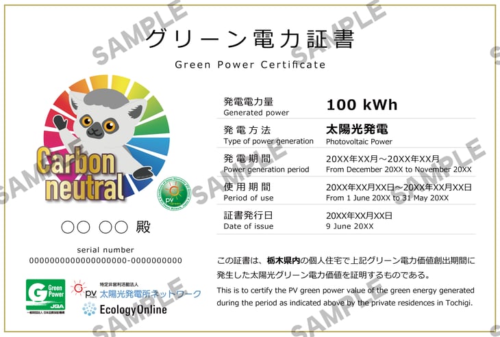 ※「グリーン電力証書」は、再生可能エネルギーを使用したことを証明する仕組みです。支援によって脱炭素社会への一歩を実感いただけます。10月中旬にメールにて送付予定です。