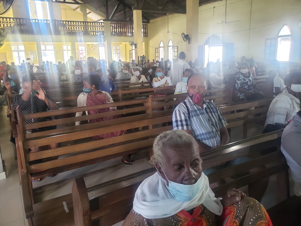 5月21日にアンバンジャの教会にて、感染予防の啓発活動とマスクの配布を行ったそうです。