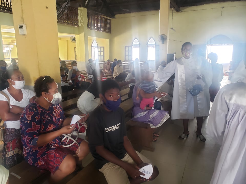アンバンジャの教会での啓発活動とマスクの配布/Awareness Raising and Distribution of Masks at a Church in Ambanja(English follows)