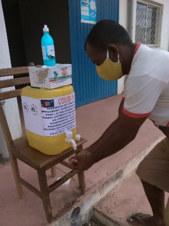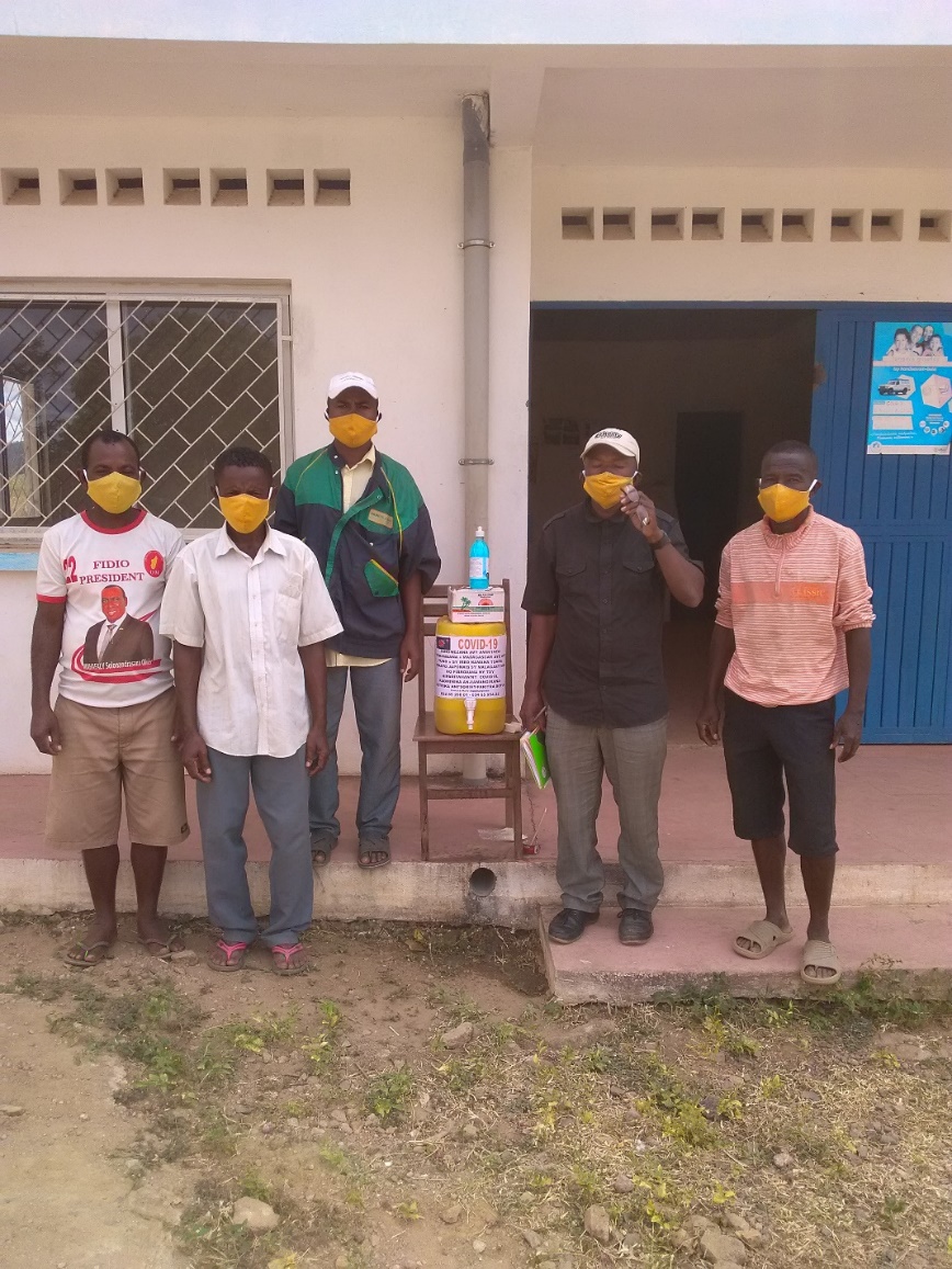 6月8~10日と15-16日にマダガスカルの北西部のアンジアマンギーラナ市で、植林や改良かまど普及を推進する住民講師らによって、学校や市場などに新型コロナウィルスの対策の啓発及び譲渡しました。