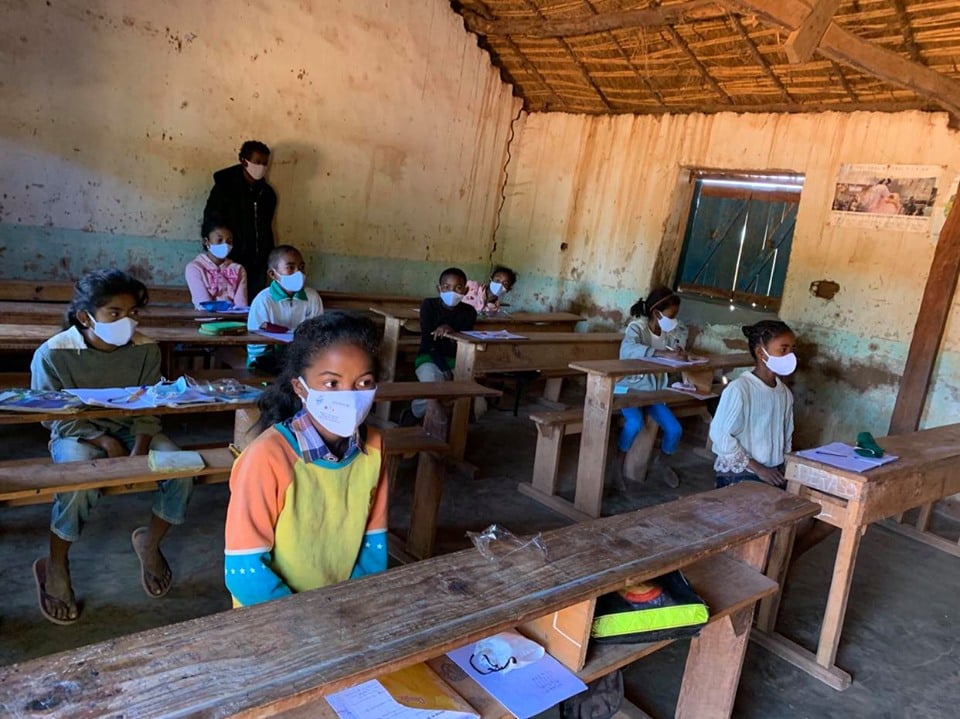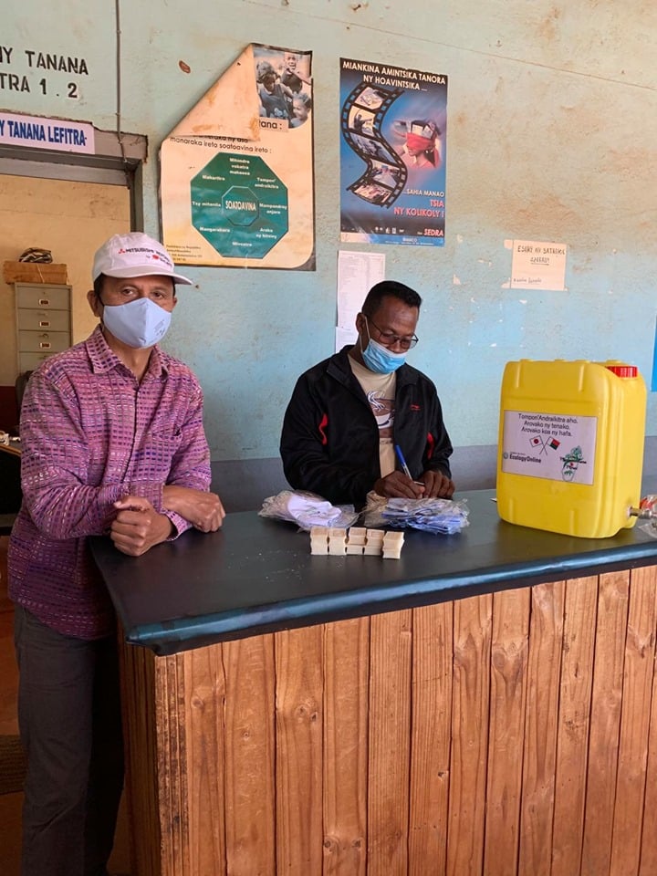 6月2~3日、マダガスカルのサカイ地域で里山エネルギースクールとして活動するロバソア小学校はじめ、市役所、村落などを訪問。マスク、石けんなどの新型コロナ感染対策物資を届けました。