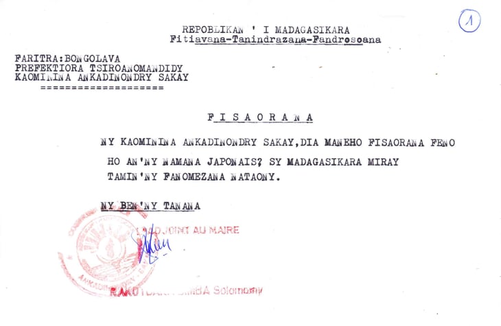 署名:副市長 ラコトアリシンバ ソロマニ