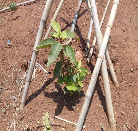 前回訪問時に里山が植樹したラビンチャラ(薬草の木)が育っている。