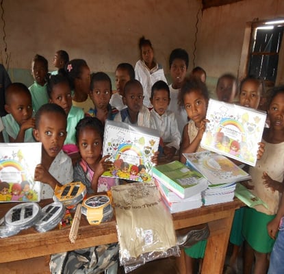 (ノートがない子供が多く、校長先生の要請もあり、マダガスカルみらいで提供)