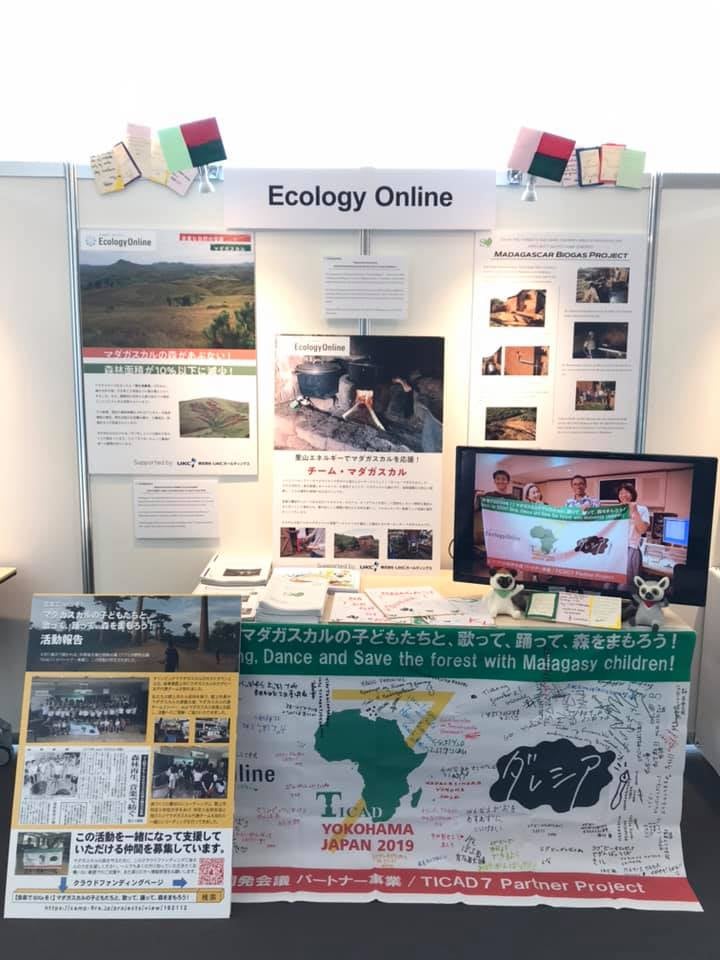 エコロジーオンラインが、全体会合が行われる会議場前に出展したブースにはマダガスカル大統領夫人も訪れ、同国での森林再生の事業での連携を話し合いました。