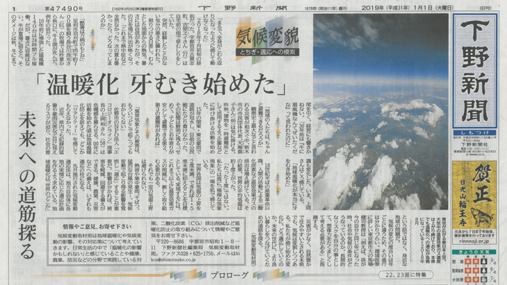 2019年1月1日、下野新聞で始まった気候変動の大型連載にエコロジーオンライン理事長上岡裕のコメントが掲載されました。