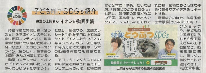 2022年8月20日、下野新聞にイオンみらいこどもキャンパス「特報どうぶつSDGs」の記事が掲載されました。