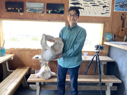 カフェにもなっている「沖倉商店」でコーヒーを頂きながらクジラの話で盛り上がる一同。