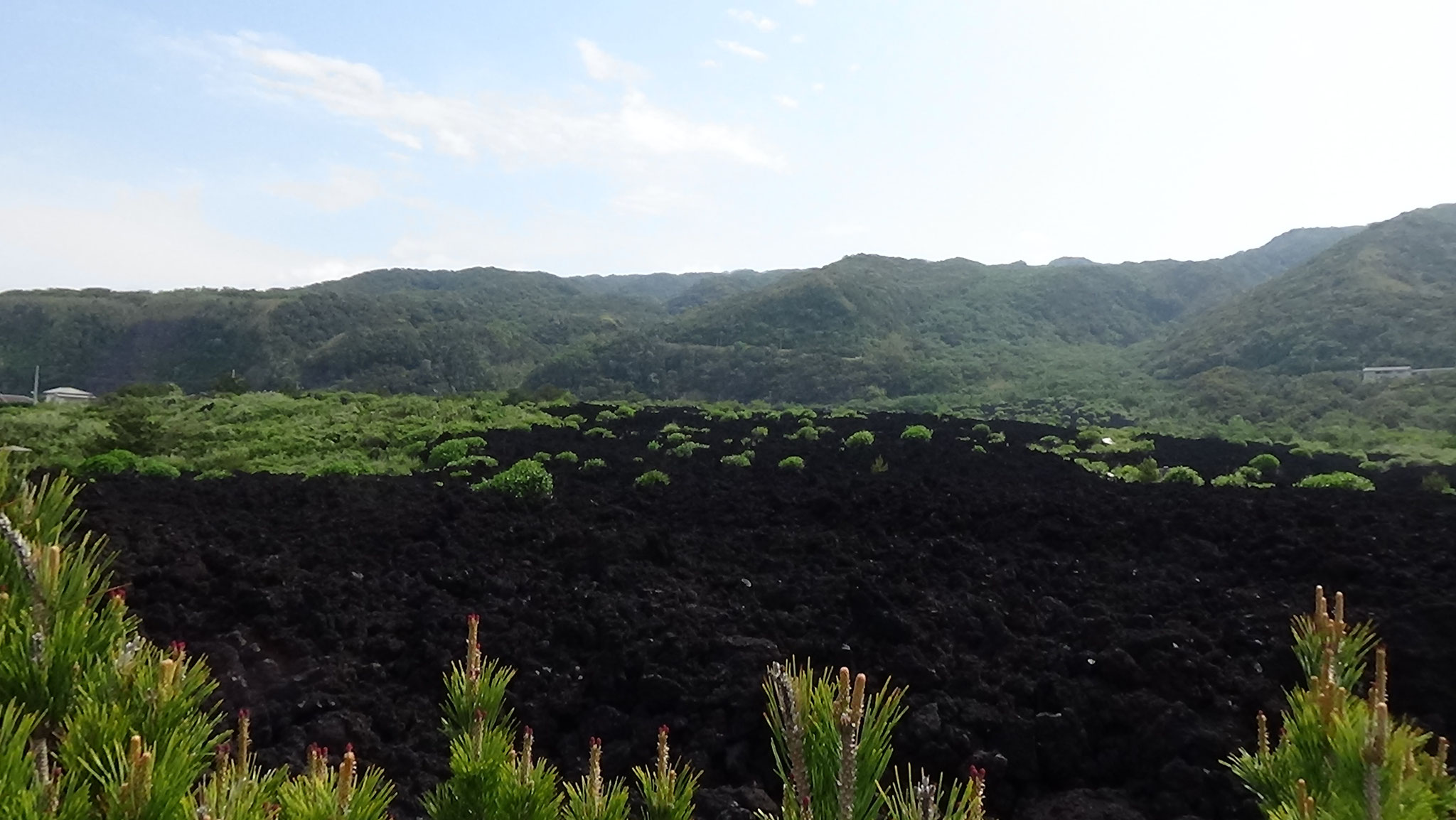 写真のような珍しい形の溶岩は溶岩樹形というもので、樹木を取り囲んだ溶岩が樹木が焼失した後にそのまま冷え固まり、空洞を形成したものだそうです。