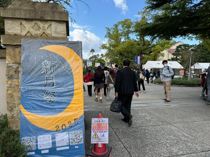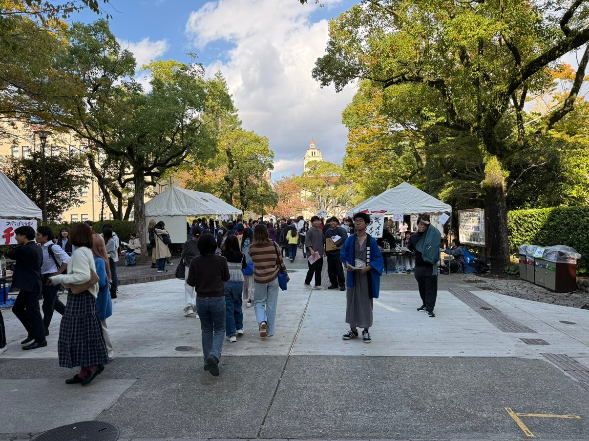 内田さんと一緒に、支援で集まったえんぴつを持って写真撮影に応じてくれた村上舞さん(社会学部3回生)は、これから本格的な就職活動が始まるそうで、色々将来の夢を語りながら、学園祭を大学の正門を出る最後まで案内してくれました。