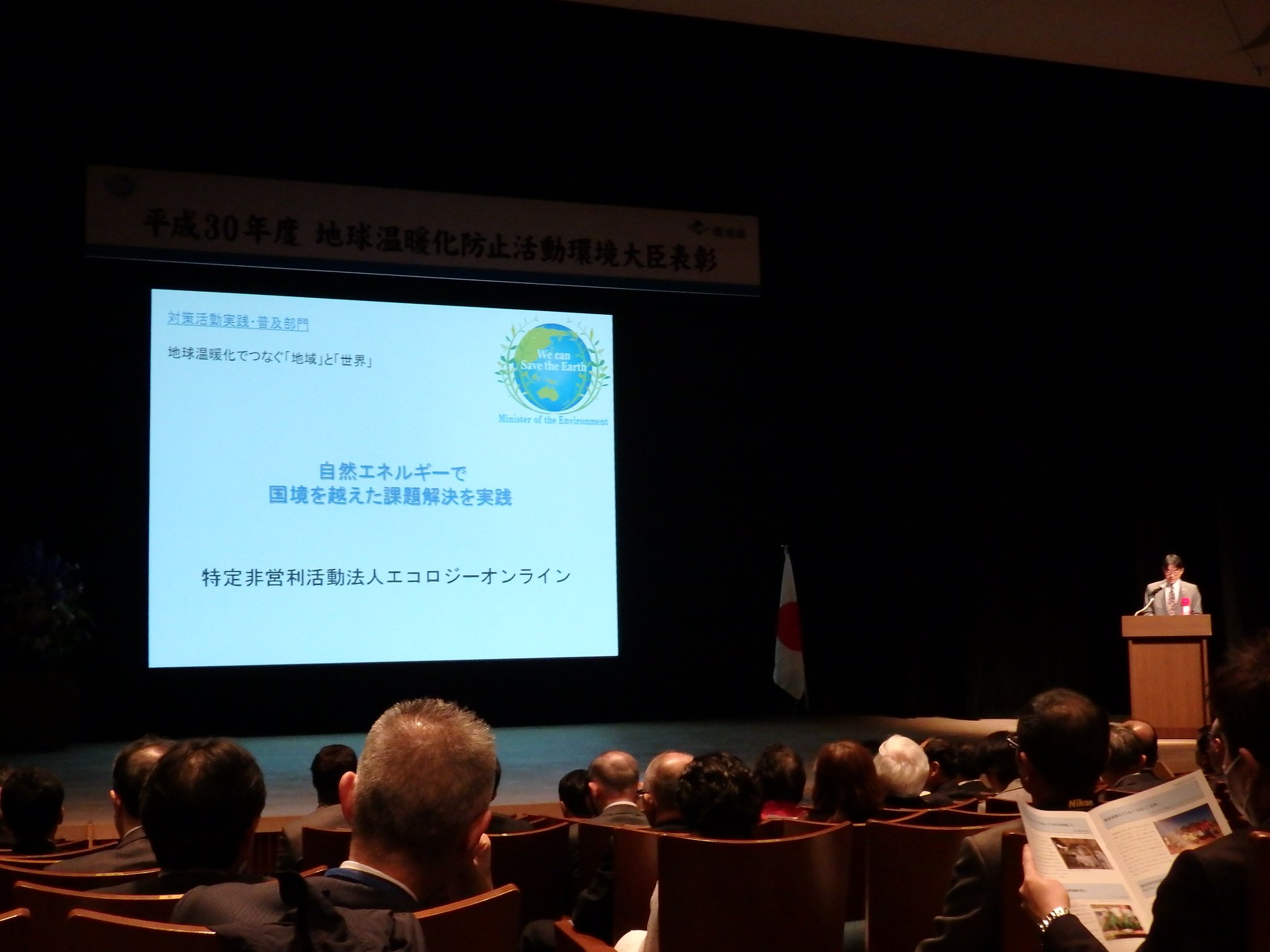 NPO法人エコロジーオンライン(栃木県佐野市 理事長:上岡裕)は、平成30年度地球温暖化防止活動環境大臣表彰で環境大臣賞を受賞しました。