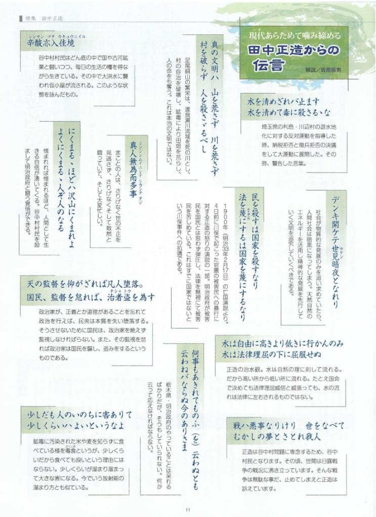 「水を清めざれバ止ます 水を清めて毒に殺さるゝな」~百年を経て今に蘇る田中正造の伝言~