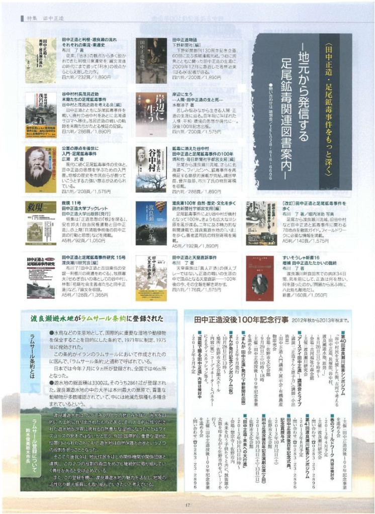 その鉱毒の被害は、源流の足尾の山々から、そこから流れ出す渡良瀬川の流域全体に及びました。その渡良瀬川沿川を中心に配布されている「渡良瀬通信」が、田中正造没後100年の企画として田中正造の特集を組みました。