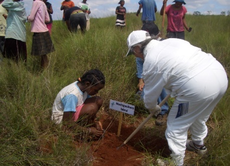 私たちはその後、 ロバソア小学校の教師、児童及び父兄と、ラベンチャラとユーカリ50本の記念植林及び郊外で300本を植林しました。