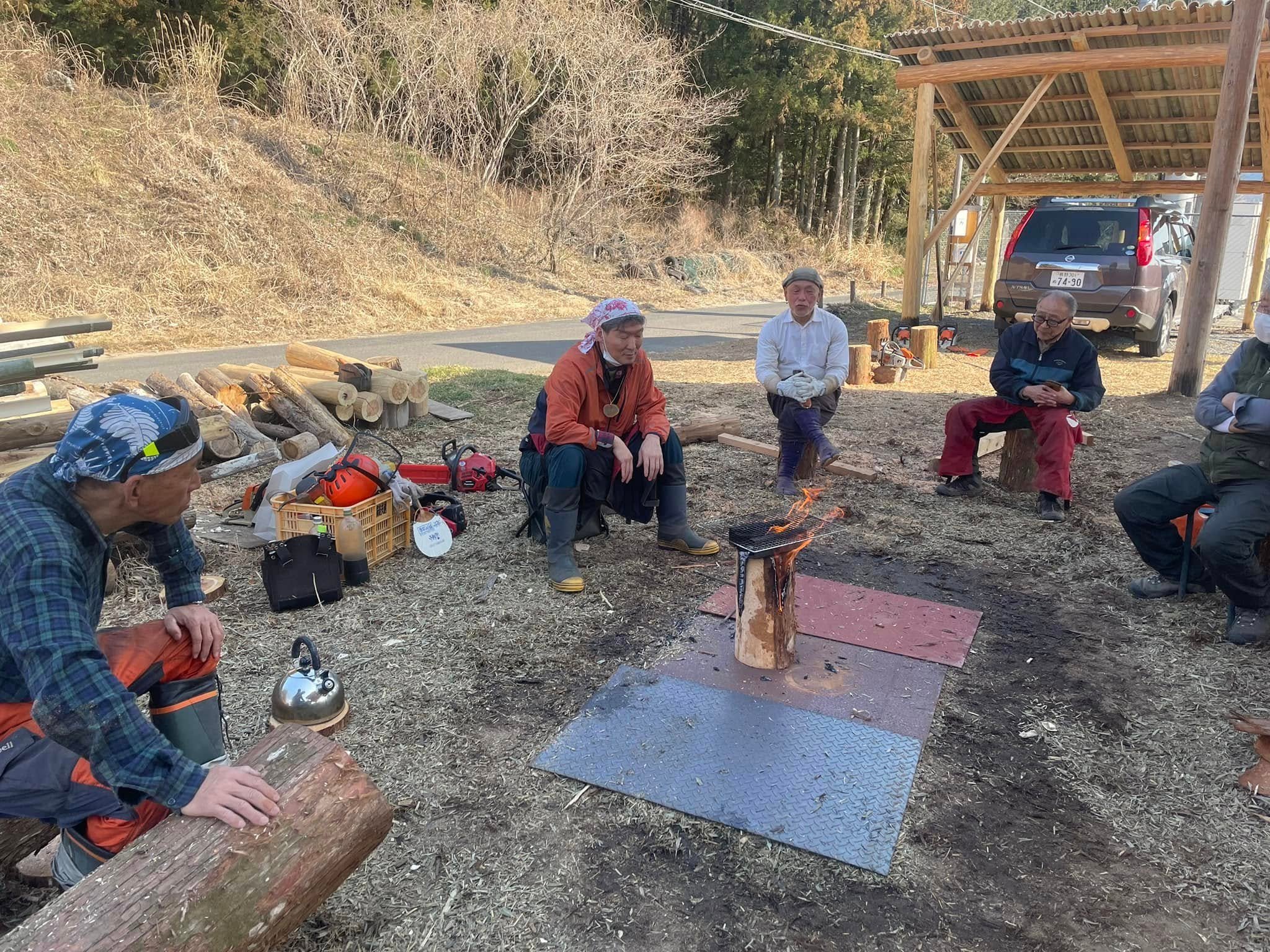長野県飯山市を中心に森をテーマに活動するフォレストデザイン。このたび代表の余頃友康さんを奥佐野の里山フィールドにお招きしてログファイヤーのワークショップを行いました。