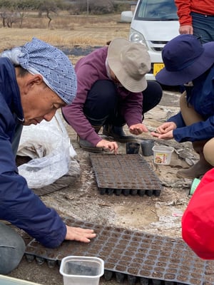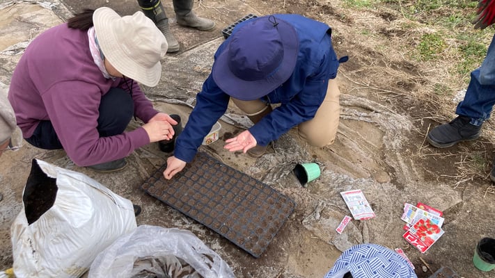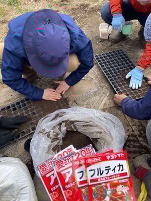 育苗ポットにも種をまき、各自家に持ち帰って育てます🌱