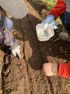 1cmほどの穴をあけ、等間隔にまいていきます。
