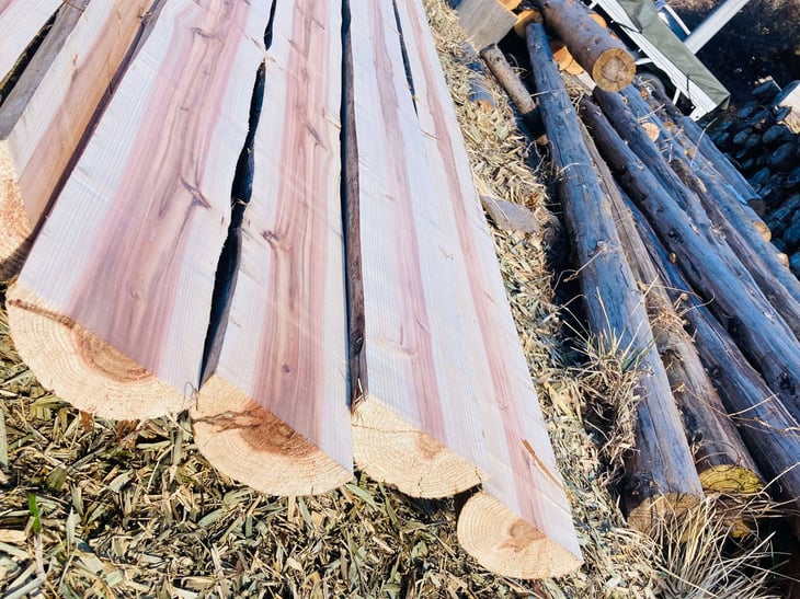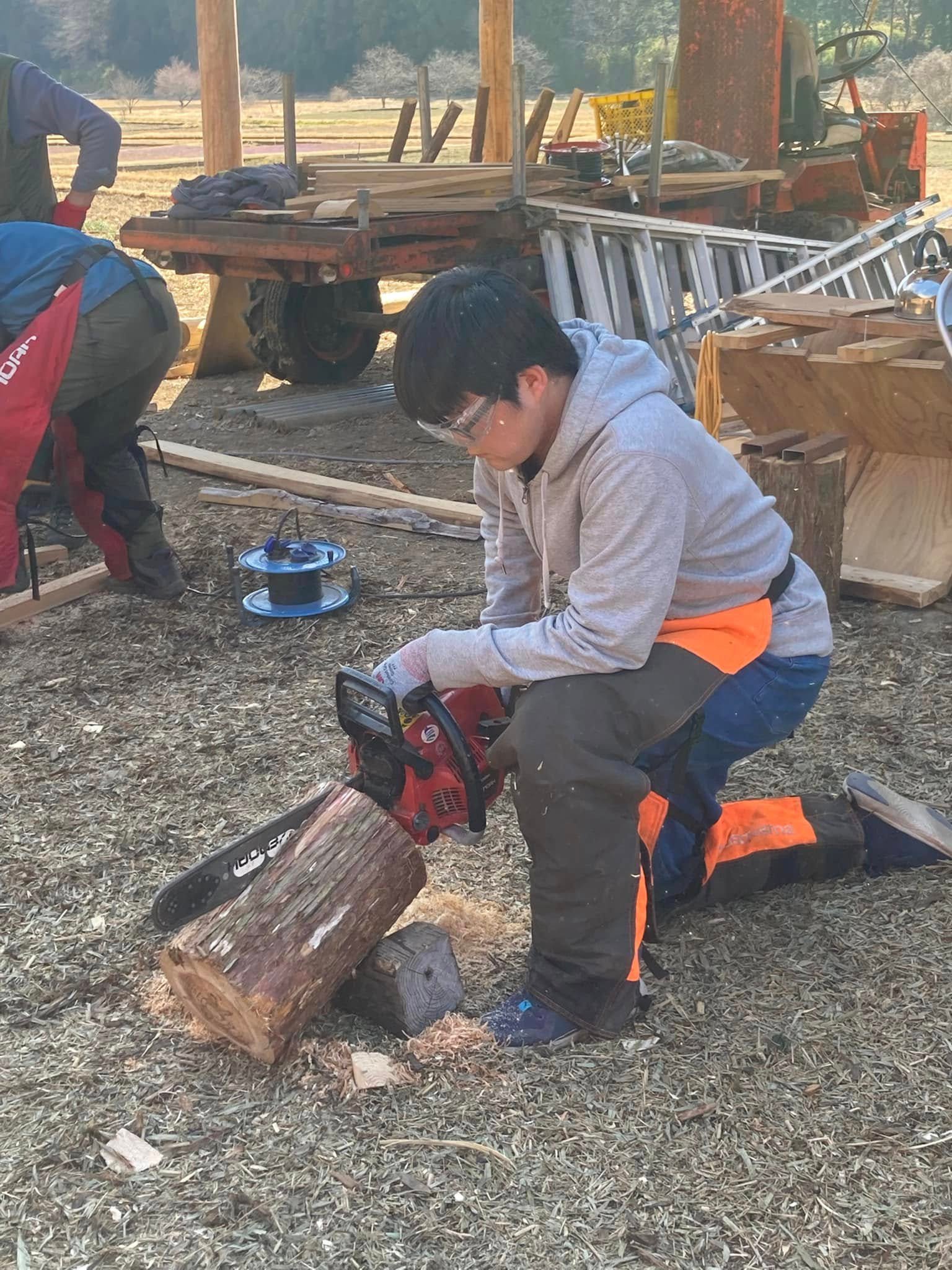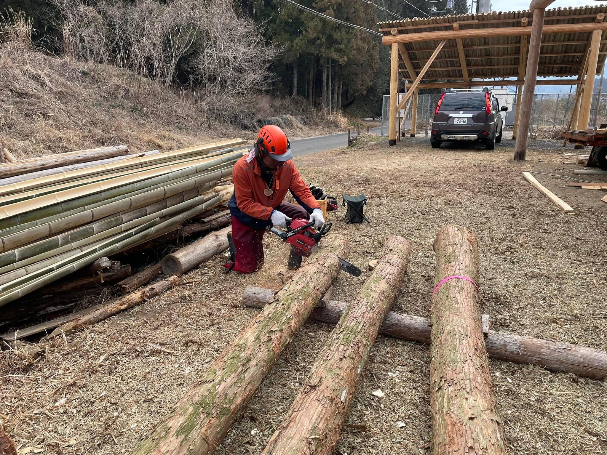 奥佐野・多田の農泊事業に新たな顔!丸太ガレージ小屋が誕生