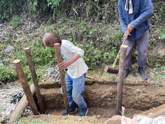 丸太は現地の間伐材を使い、地元の大工さんに協力してもらったそうです。