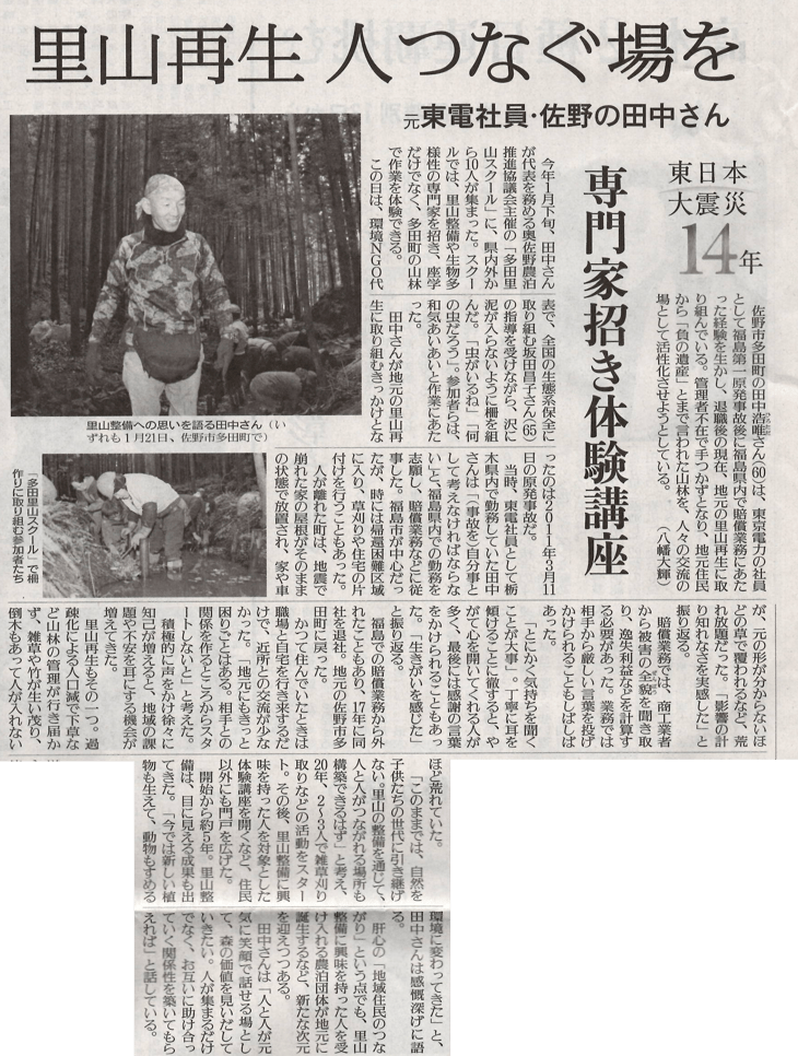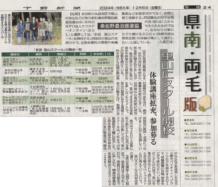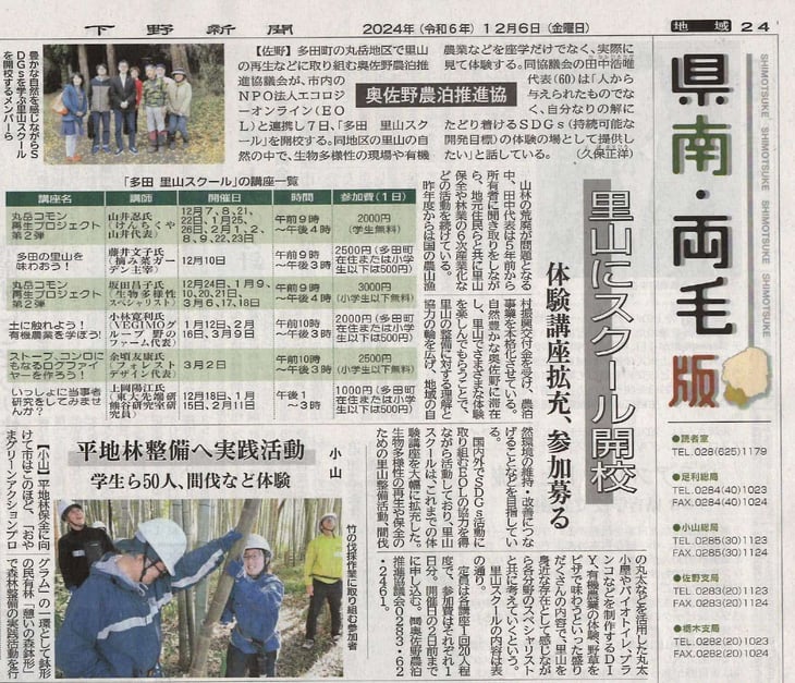 エコロジーオンラインはこの度、佐野市多田町で活動する丸岳・里山再生協力会と協力して、里山体験をメインにした里山研修事業を始めることにいたしました。