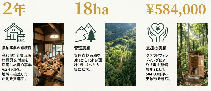 ・意義: 荒れた山を単に「手入れ」するのではなく、生態系そのものが自律的に回復する力を引き出します。
