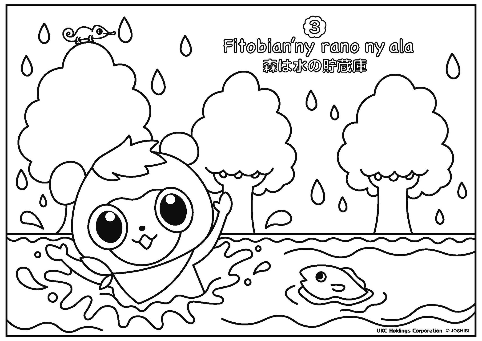 子どもの学習には、大人の説明を聞いてもらうより、まずは、目で見て、活動するのが一番です。子ども達に森の大切さを学んでもらい、資源を有効に活用することを教えるために、女子美術大学の協力を得て完成したのが「森を守るぬり絵」です。