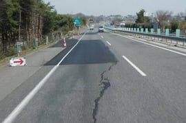 今回は第1弾の最後の訪問先だった、宮城県南三陸町の旭ヶ丘団地へ向かいます。被災地へ向かう道路は、所どころまだ亀裂が走っている部分もあり、地震の爪痕が垣間見えます。しかしながら、NEXCO東日本さんのご尽力により、着々と道路の整備が進んでいます。現在は一般車両が通れるまでに回復していました。